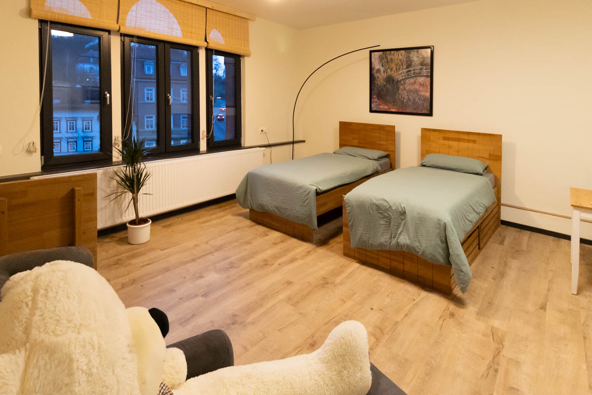 5 Gehminuten vom Hauptbahnhof . Sehenswürdigkeiten wie . Bachmuseum, Lutherhaus, Automobilmuseum, Geschäfte und Gastronomie zu fuß erreichbar. Wartburg, Drachenschluchtsehr auch in der Nähe. Großzügige knapp 130 m² 3 Schlafzimmer mit jeweils 1, 2 und 3 Betten. Zentraler Punkt ist die Wohnküche. sowie 2 große Badezimmer mit jeweils eigener Dusche.
